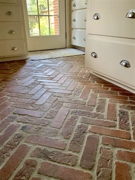 Taking a wide broom and sweeping sand over the cracks to secure the bricks is a must. Diy brick tile floor in herringbone pattern herringbone brick tile floor materials: Brick kitchen floor brick kitchen floor images srmistadmission info.