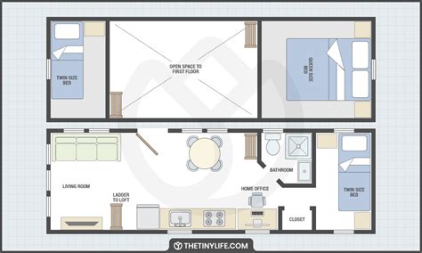 8.5 feet x 24 feet. Blueprint tiny house loft dimensions. This popular size allows more livable space while staying close enough to 20’ to still be comfortable to tow.